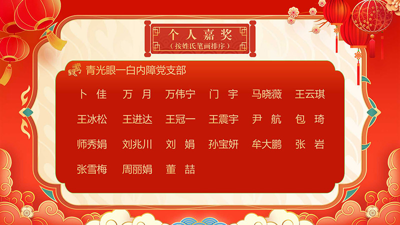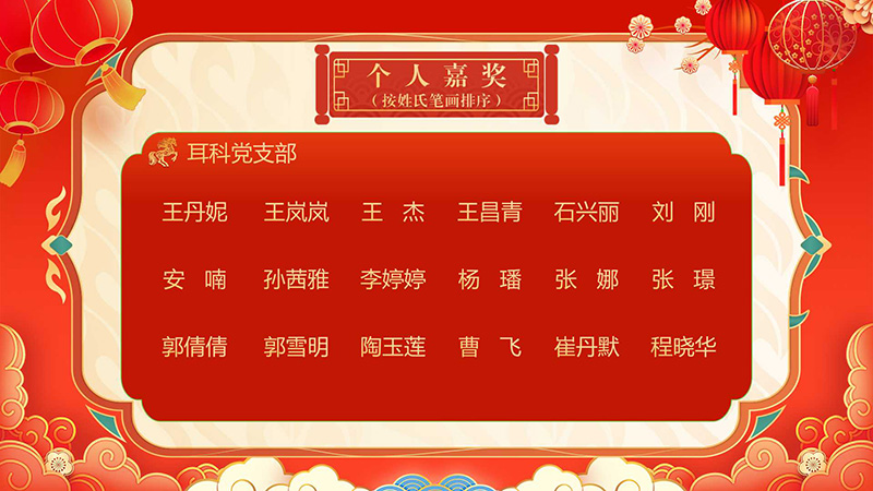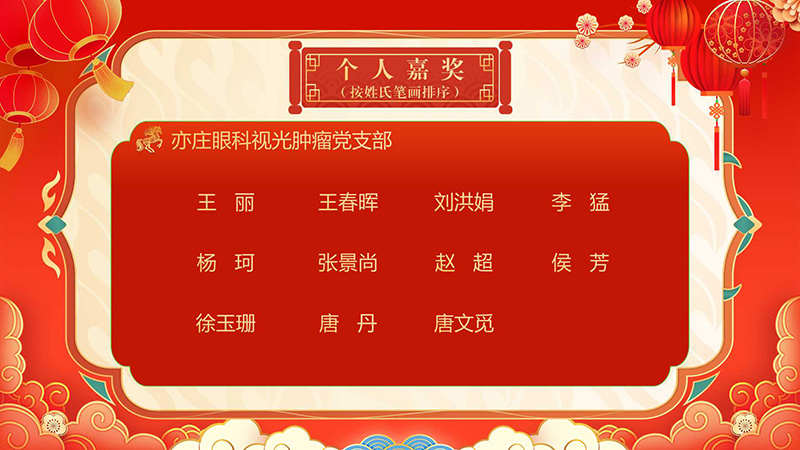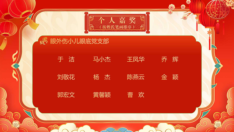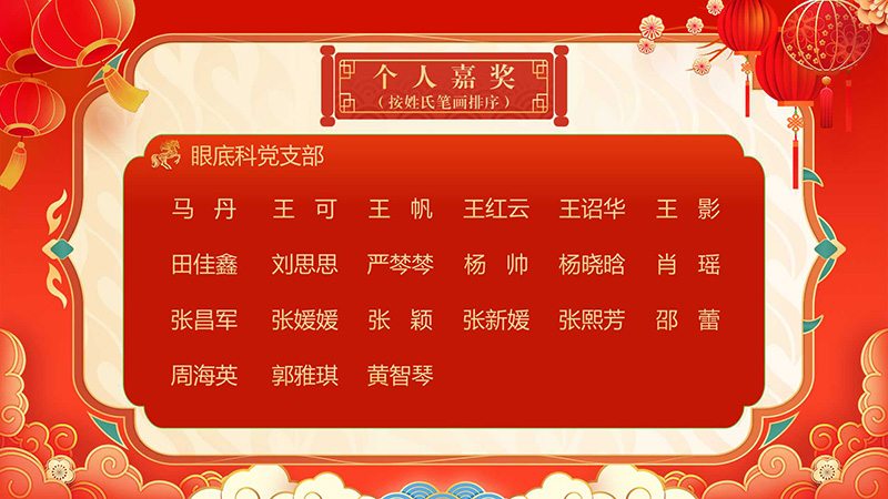 经医院党委常委会讨论决定,评选眼角膜科等37个科室和职能处室为优秀集体,对王宁利等21人给予个人记功,丁畅等758人给予个人嘉奖。